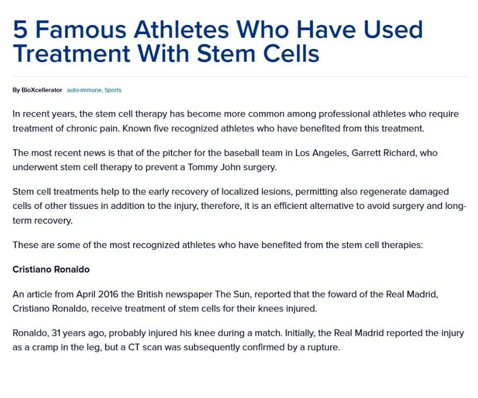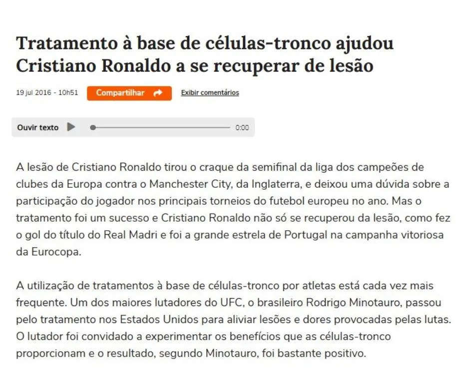 Mas quem tem mais acesso e informação, como atletas e celebridades, já buscou esse tipo de solução médica avançada.